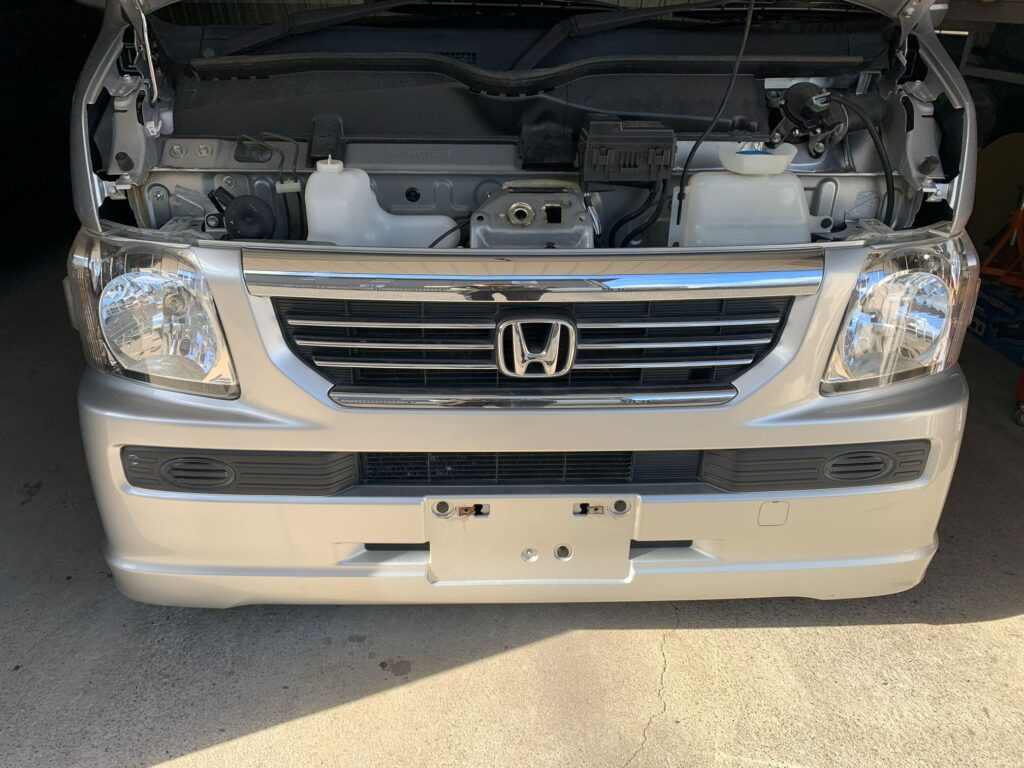 バンパーが外れました。 バモスは比較的簡単に取り外せるほうだと思います。