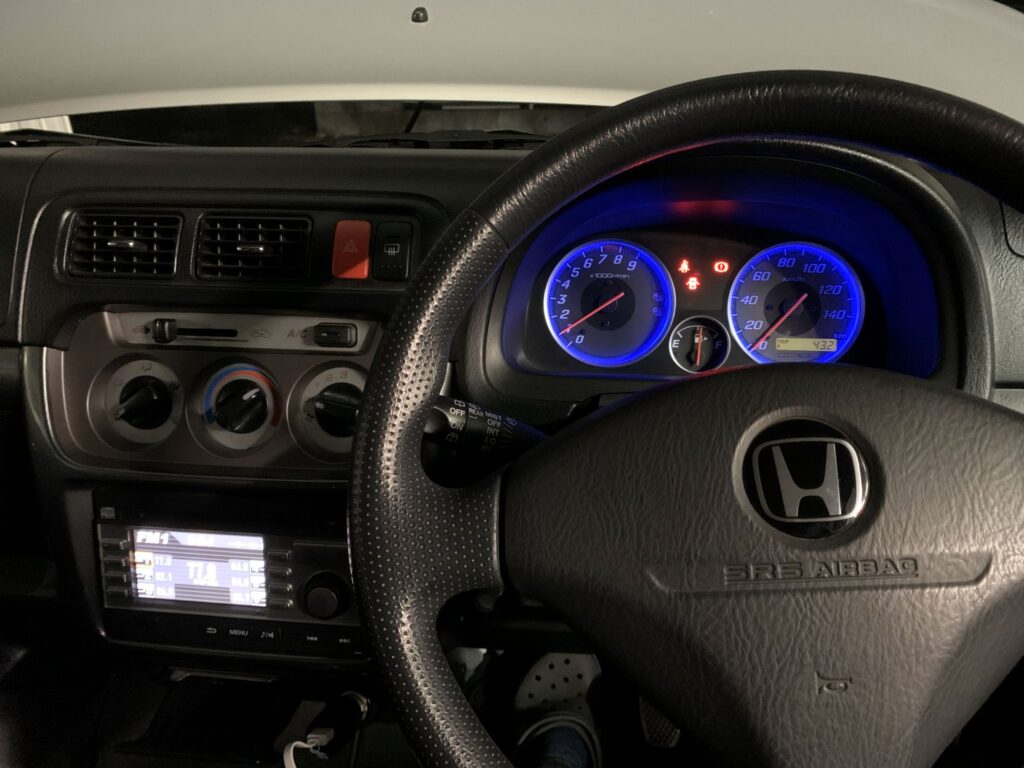 (前のバモスと違って高年式ではメーターパネルが常時ブルーのライトが点灯してるんですね。)