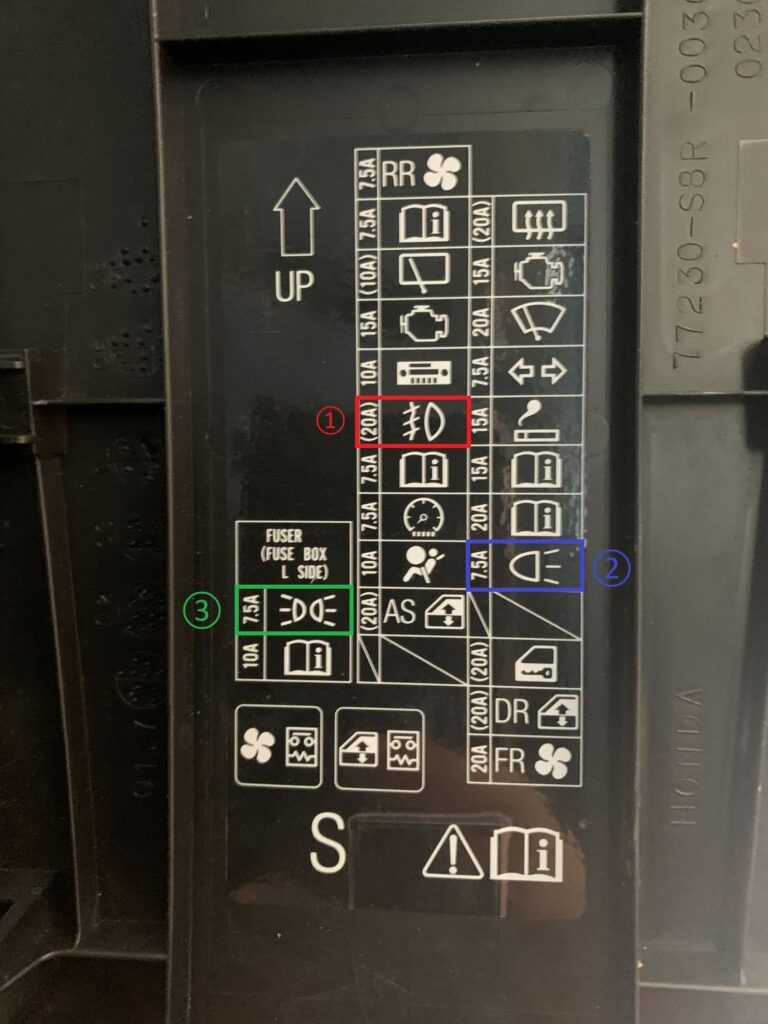 下左下画像①~③のヒューズを確認して見ました。